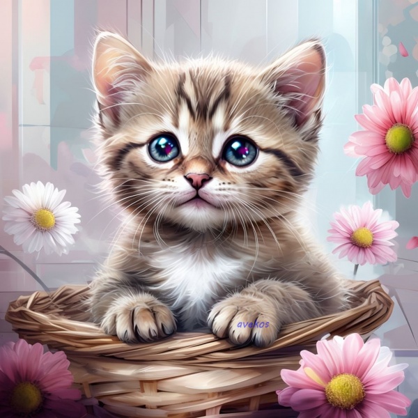Krásný obrázek s kočičkou pro vaše tvoření. V naší nabídce najdete více obrázků ve stejném stylu.