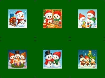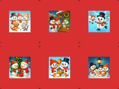 Sada 4 bavlněných panelů s krásnými obrázky sněhuláků a čísly, na výrobu adventního kalendáře, nebo pytlíčků.