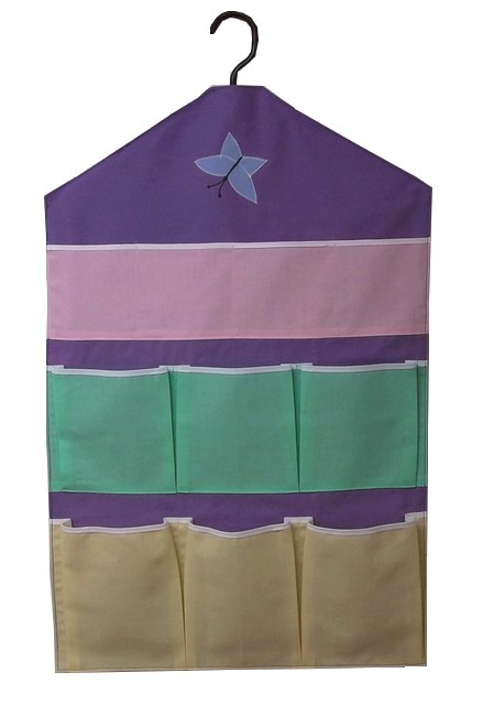 Kapsář se zavěšením na ramínko o rozměrech 66 x 38 cm má 10 kapes ve třech velikostech. Lze použít ve skříni na drobnosti, zavěsit na dveře, na stěnu aj.