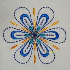 Bavlněný pytlík o rozměrech 23 x 35 cm se strojově vyšitou mandalou.