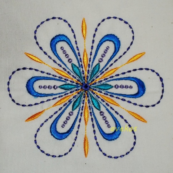 Bavlněný pytlík o rozměrech 23 x 35 cm se strojově vyšitou mandalou.